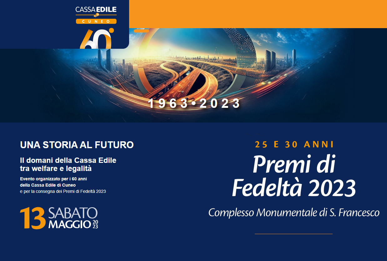 Evento organizzato per i 60 anni della Cassa Edile di Cuneo e per la consegna dei Premi di Fedeltà 2023, sabato 13 maggio 2023, presso il Complesso Monumentale di S. Francesco alle 9:30 in via Santa Maria 10, Cuneo (CN)